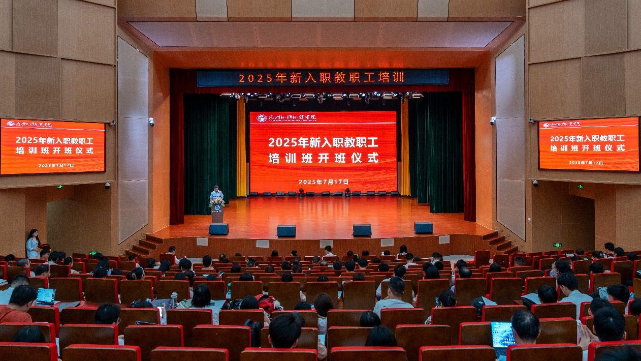 7月17日,我校在博雅音乐厅举行2025年新入职教职工培训开班仪式。校长助理钟杭州、人事处处长赵毅、教师专业发展中心相关同志,以及新入职教职工230余人参加了仪式。