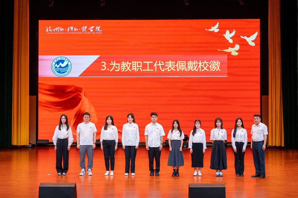 为教职工代表佩戴校徽
