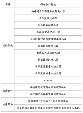 学院坚持实践育人工作总基调,落实“校地协同”育人,强化“校园、校校、校地、校企”合作,推进校外实习实践建设。先后与福建省长乐师范学校附属小学、长乐区洞江小学、长乐区海峡路小学、长乐区首占中心小学、福州市长乐区直机关幼儿园、实验幼儿园、教师进修学校附属幼儿园和仓山区福一幼儿园等三十余所学校建立校外教育实践基地。