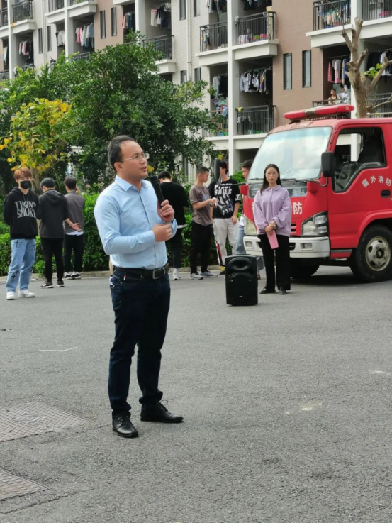 教育学院副院长,直属党支部书记林业铖宣布教育学院师生义务消防队成立