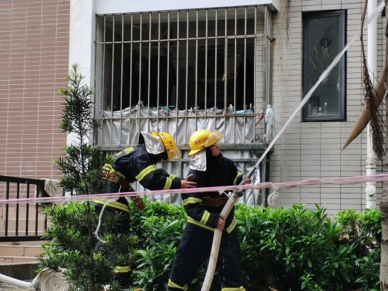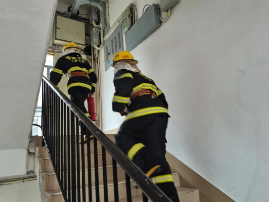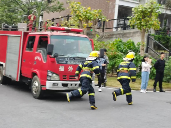 警铃声响,校义务消防队迅速出动,展开灭火救援工作。