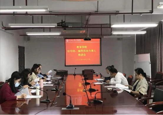 2020年10月20日,教育学院召开班导师、辅导员合力育人推进会,发挥教师在学生成长和成才中的指导作用,实现“全员育人、全方位育人、全过程育人”的目标,秉承“教”“学”协同育人,通过此次交流会,进一步夯实班导师、辅导员合力育人,浓厚我院良好的育人氛围。
