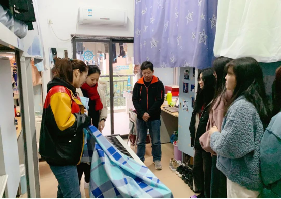 我院班导师在工作之余时常走进学生宿舍,贴近学生生活,让同学们感受到了班导师最亲切的问候和温暖,同时进一步推进了教育学院特色、文明、卫生、安全宿舍的创建工作,营造积极健康的宿舍文化,充分发挥寝室文化对大学生全面发展与健康成长的重要作用。