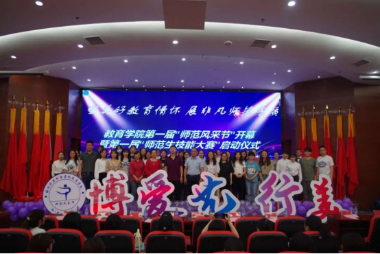 为把我院学子培养成具有“博、爱、艺、行、美”师范气质的时代新人,引导他们在满足社会需要,服务民族复兴伟大事业中绽放青春之花。我院于2021年5月19日举办以“塑美好教育情怀 展非凡师范气质”为主题的教育学院第一届“师范风采节”开幕暨第一届“师范生技能大赛”启动仪式。