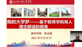 为让新生全面了解我院育人理念以及育人特色,营造良好的学院氛围,推动新同学更好地融入教院的大家庭,我院开展“我的大学梦——基于教育学院育人理念解读的视角 ”专题讲座。林业铖副教授紧扣塑造学生具有“美好”教育情怀这一目标,以“博·爱·艺·行·美”展现学生师范品质和师范气质,将个人的“大学梦”融入到实现中华民族伟大复兴的“中国梦”之中,立志在实现中国梦的伟大实践中创造自己的精彩人生。
