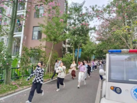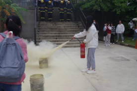 原来,教院的师生,在校义务消防队的在校义务消防队的配合下,进行了一场消防逃生演练。