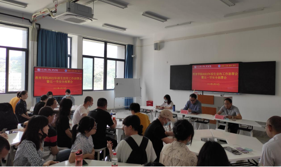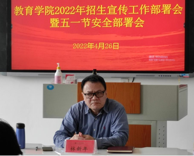 4月26日,教育学院召开“2022年招生宣传工作部署会暨五一节安全部署会”,学院领导班子及全院教职工参加大会,会议由办公室副主任黄慧主持。