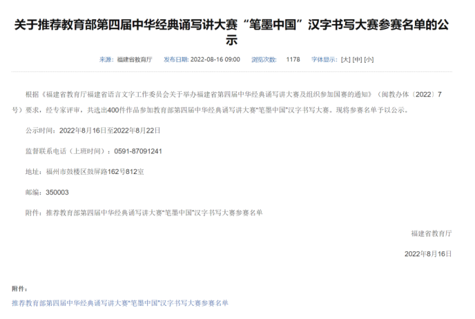 近日,我校三位学子参加了在泉州师范学院举办的福建省第四届中华经典诵写讲大赛“笔墨中国”汉字书写赛,我院康雅莹(指导老师:林娜)、刘晓榕(指导老师:梅小青)入围,获得教育部第四届中华经典诵写讲大赛“笔墨中国”汉字书写大赛参赛资格。