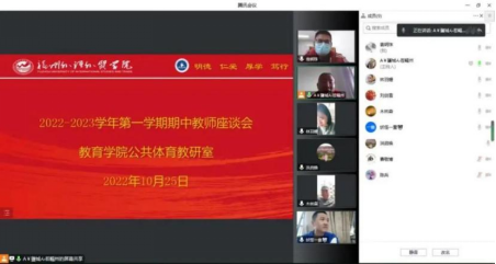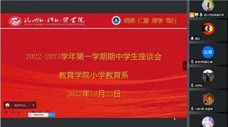 为了解我院师生在校的学习生活状况以及遇到的实际问题,充分落实以学生为本、全面发展的理念。教育学院各系/教研室于2022年10月25日-27日,在腾讯会议开展2022-2023学年第共一学期期中教学师生座谈会,各系主任以及各系教师代表和各班学生代表参加了会议。