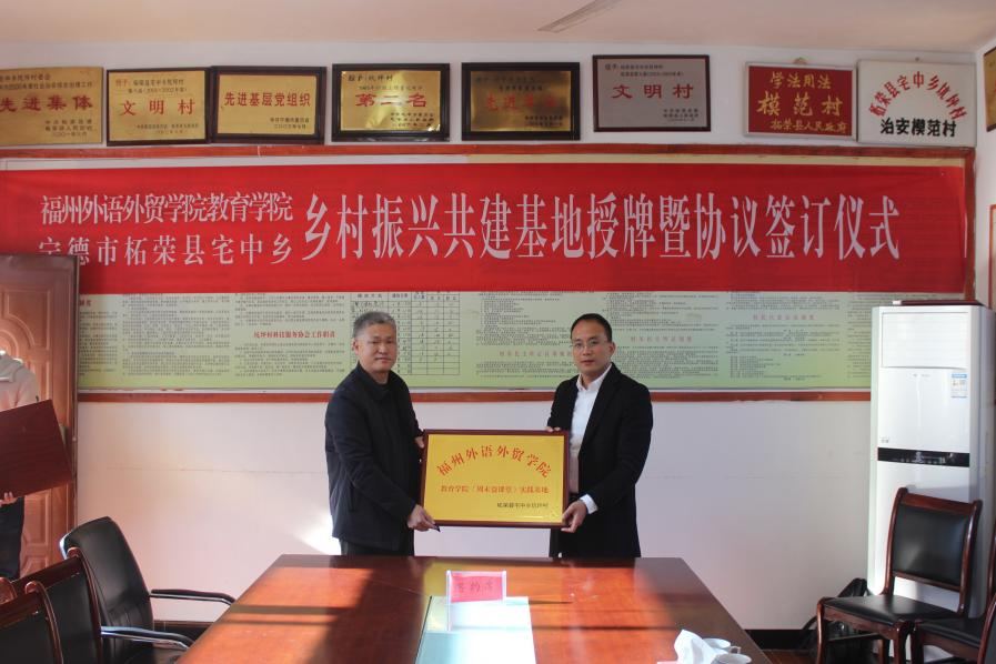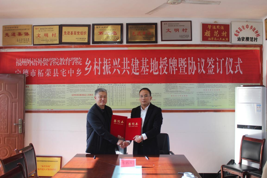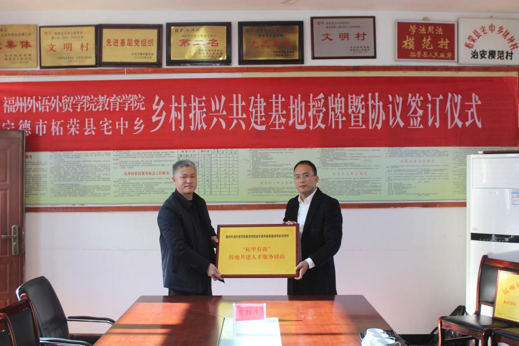 为进一步发挥高校助力乡村振兴人才优势,凝聚推动乡村文化振兴的强大合力。2023年11月17日,乐鱼网页版教育学院与宁德市柘荣县宅中乡人民政府乡村振兴共建基地挂牌仪式在宅中乡坑坪村村部会议室成功举行。