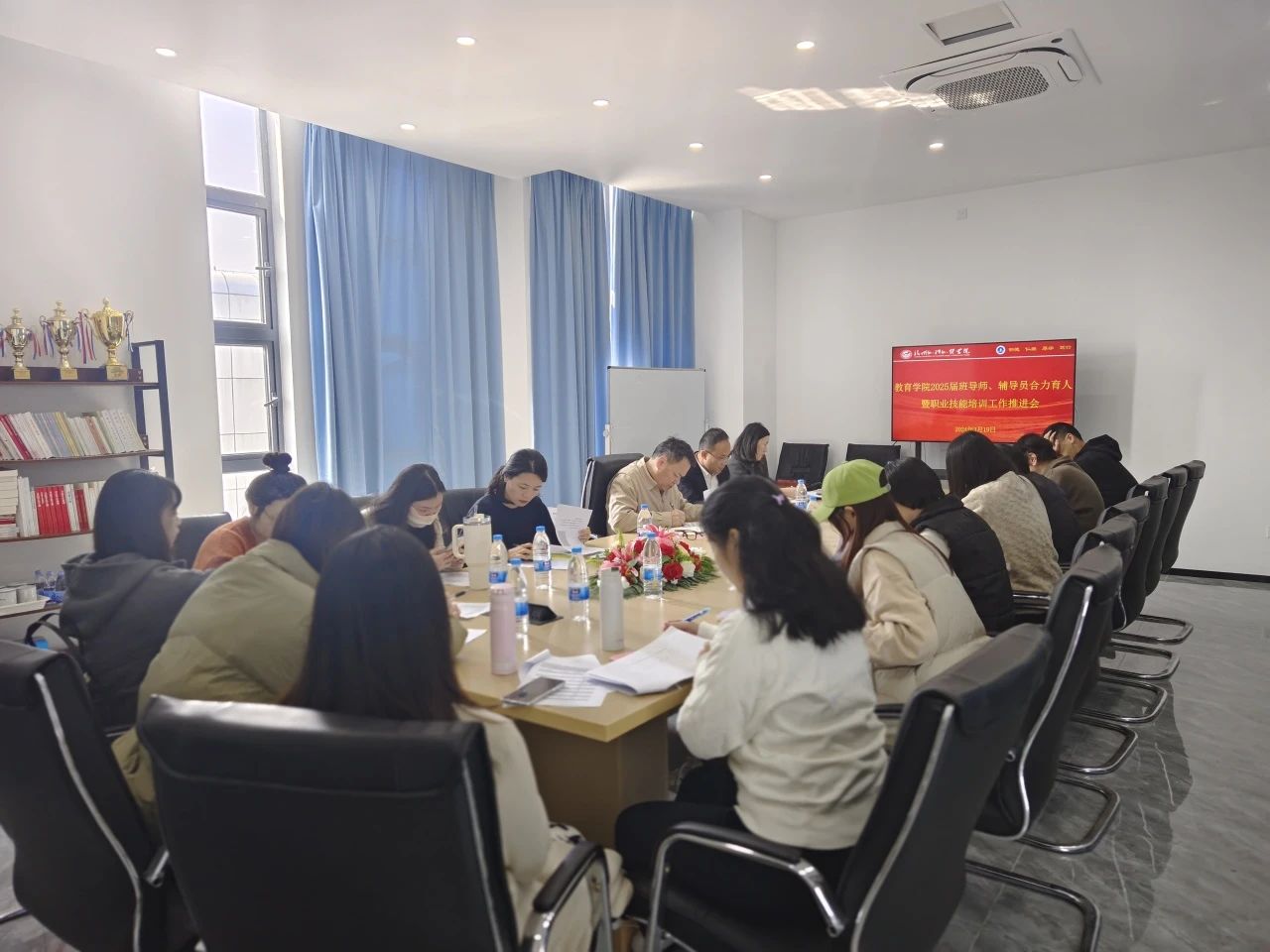 此次会议由教育学院分党委书记、副院长林业铖副教授主持,教育学院院长林新年教授、院长助理马小芳博士以及各班级的班导师和相关辅导员共同出席,共同探讨育人策略,深化职业技能培训,为学生的全面发展筑牢根基。