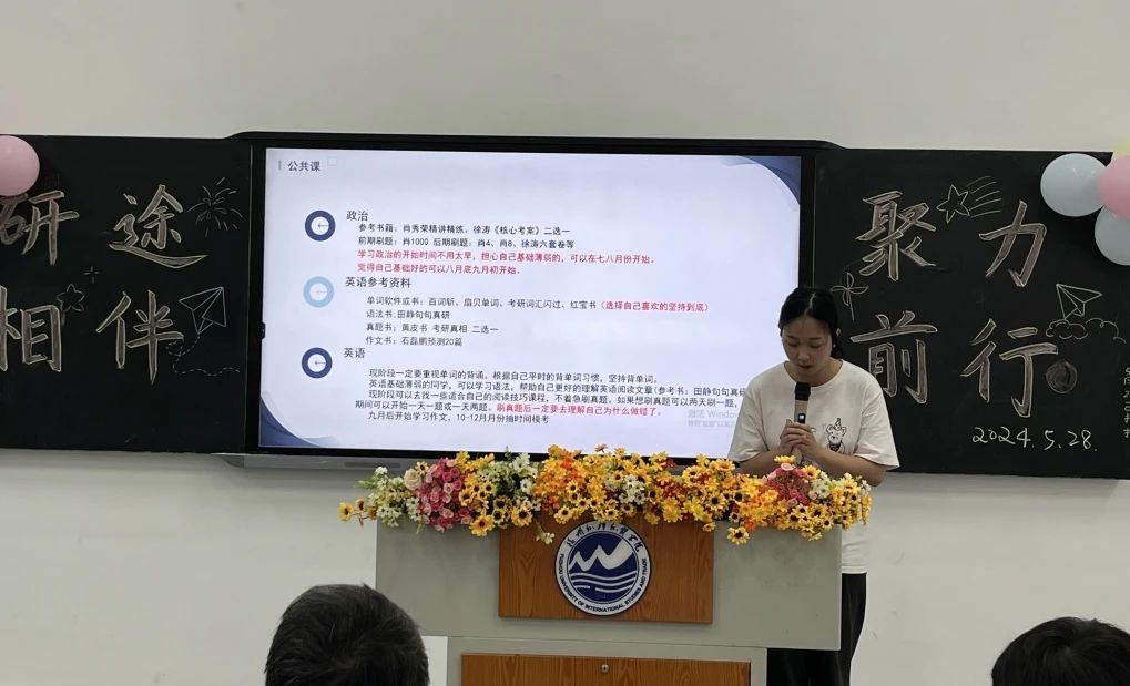 2020级学前教育1班林智鹰作为考研上岸学生代表发言,从择校与选择专业、个人的备考经验、以及备考的注意事项来向大家分享自己的考研经验与心得,并祝愿各位同学能够成功上岸,拥有属于自己的光明未来,勇敢前行,一定能够迎来成功的曙光!