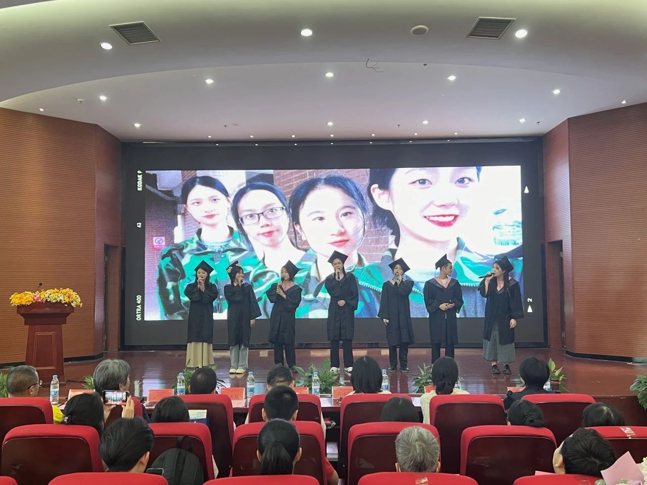 舞台上,毕业生们身着学士服为观众献上了精彩暖场快闪演出,在“毕业快乐”的欢呼声与热烈的掌声将现场气氛瞬间点燃。