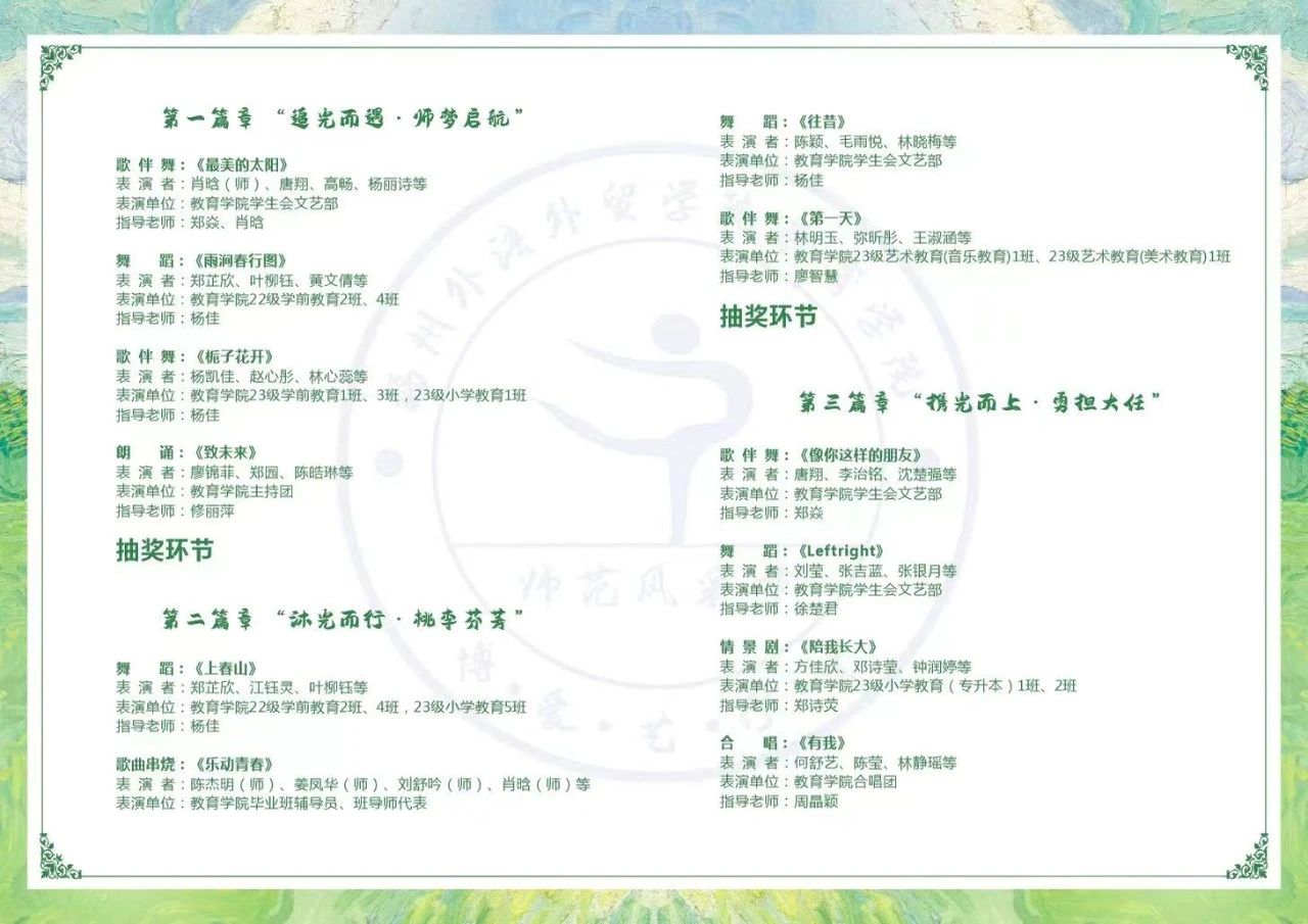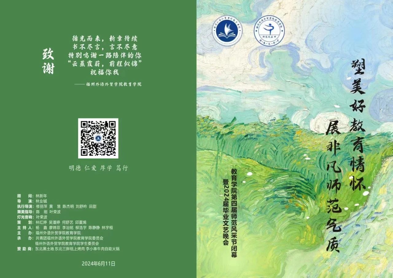 本届师范风采节从2023年12月持续到2024年6月,通过浓厚教育学院的师范文化氛围,增强教院学子的师范气质,培育“博·爱·艺·行·美”教育情怀的时代新人,共同搭建师生共同参与、学生全面展示的“师范风采节”。“师范风采节”旨在展现师范生的内在师范品质和外在师范气质,从师识、师德、师能、师品、师表五大方面进行培养,进一步厚植“美好”教育情怀,进而向学生诠释一名未来优秀教师的好学、兼容、感恩、关怀、儒雅、豁达、通艺和创新。接下来让我们一起回顾此次的闭幕式活动吧~