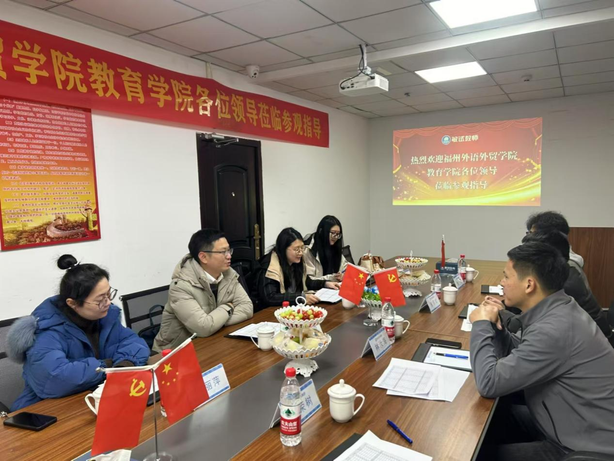 敏试教育福州分校校长林汝海、福州敏试教育福州分校市场部经理张锦斌等对我院一行表示热烈欢迎,带领参观了闽试教育集团,详细地展示了公司的工作环境及发展历程。
