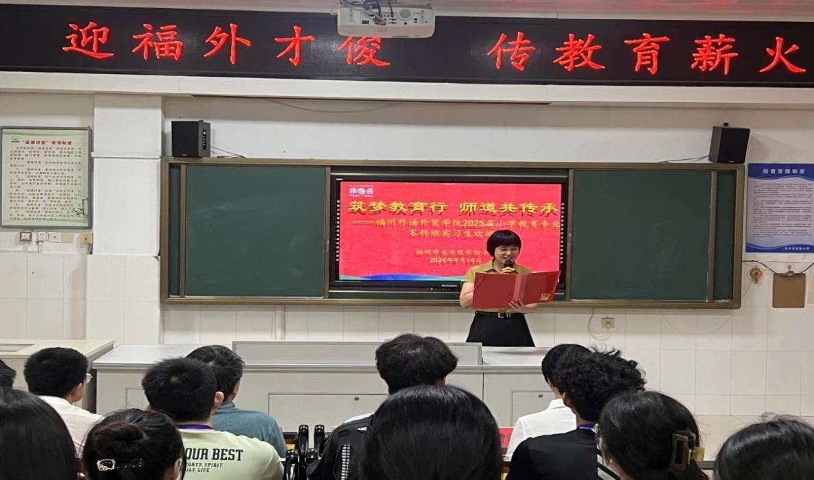 还未从夏日的余韵中回过神来,时节已悄然步入初秋。2024年9月14日,长乐区实验小学为我院2021级小学教育4班的实习生们举办了一场独具特色的欢迎仪式,我院院长林新年教授、带队教师廖钟源副教授受邀出席。此次欢迎会不仅进一步巩固了双方长久以来的合作关系,也为即将踏上实习征程的学子们揭开了崭新的一页。