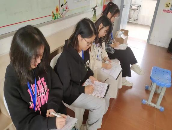 在见习期间,见习生们前往学校里各个年级的各个课堂进行听课观摩,认真学习优秀教师的课堂管理和教学经验,提升自身的综合素质,提高自身的教育教学能力。语文方向的见习生们参加了语文科组的教研活动,对作业批改、考试设置和语文教师自身学习等方面进行了学习记录。在指导老师和学校的带领下,同学们积极参与学校的各项活动,帮助指导老师进行作业批改、管理早读晚辅等活动,了解了教育教学的实际运作,对教师的工作有了更深入的认识。