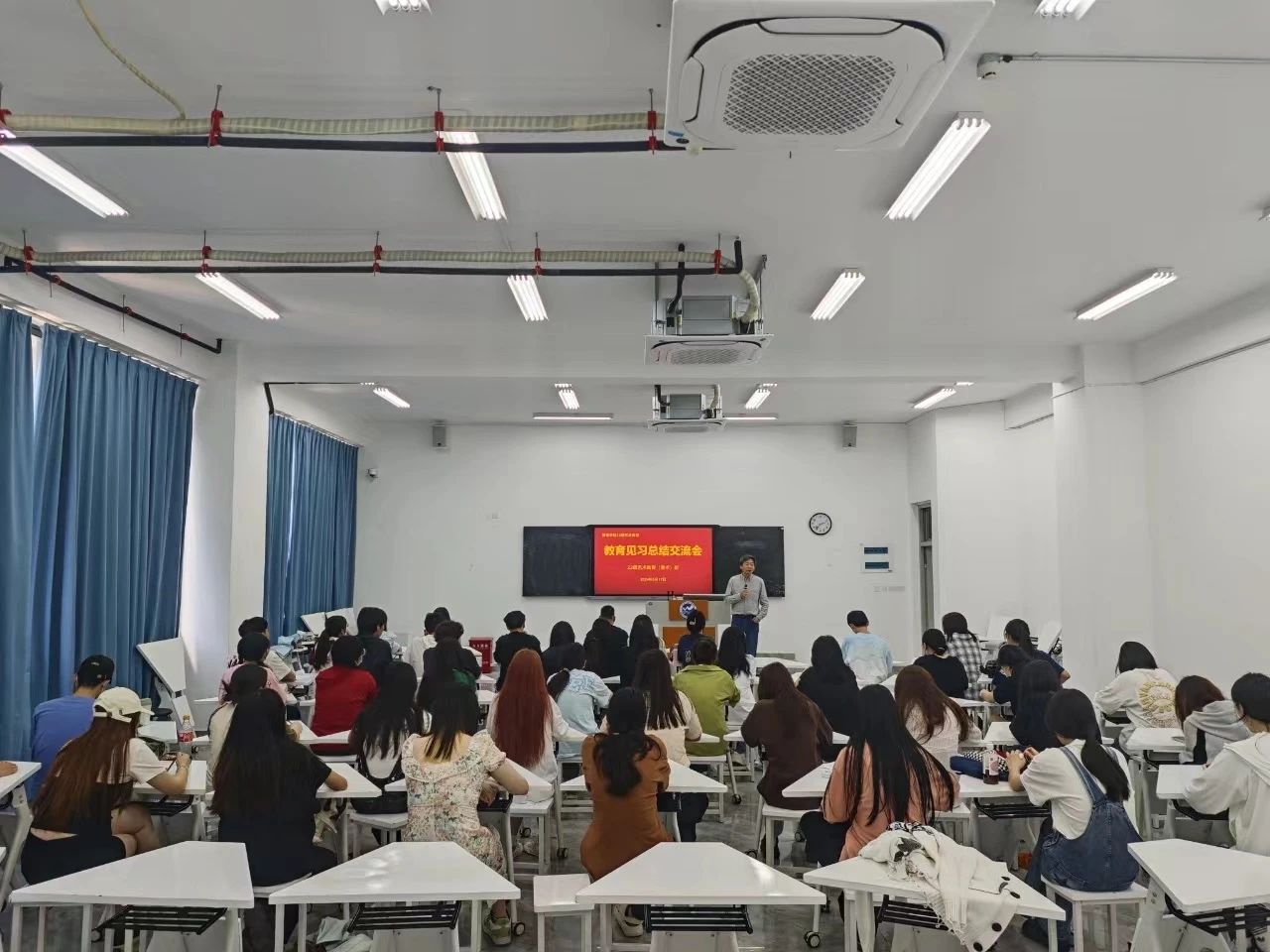5月17日下午,我院艺术教育系学生在人文1-405教室进行见习总结交流会。本次见习活动让我院学生深入了解艺术教育在中小学的实际应用和艺术教师的工作内容与职责,也让见习生们更加深入地了解艺术教育在学生成长过程中的重要作用。