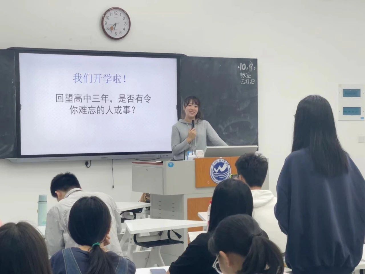 班会伊始,郑焱老师进行了自我介绍,并分享自己在定西支教的难忘经历。紧接着,邀请班级的同学分享自己高中三年里记忆深刻的人与事。通过互动,拉近了班导师与同学们之间的距离。接下来,她从大学规划、考风考纪、安全教育三个方面为同学们讲明身为大学生,应当树立正确的学习目标,合理安排大学生活,养成良好的学习习惯,有目标有规划,不虚度光阴,实现自己的理想。最后她告诉同学们,面对新环境,产生的适当焦虑以及对未来方向的迷茫是一种正常心理,同学们应积极调整心态,迎接大学生活,将会是充实且有所收获。