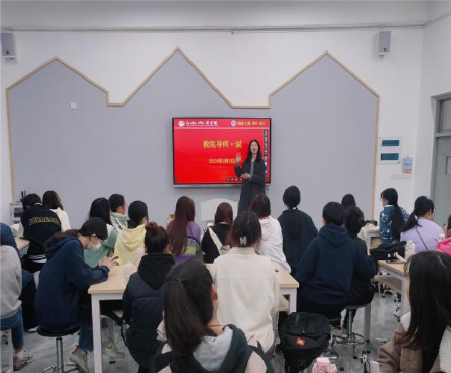 近日,教育学院班导师潘晓桐在人文1-507为22级学前教育专业3班召开本学期第一次“教院导师·说”活动,与同学们分享了新学期的期望和建议。
