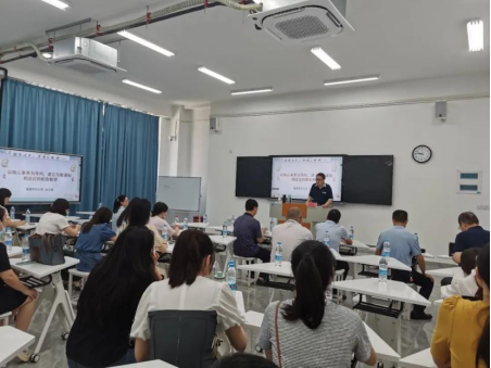 余教授从核心素养本位、学习中心、学科实践、大概念教学等四个方面,结合小学语文教学案例,为老师们生动地诠释了新课标的核心理念。他强调:核心素养基于知识高于知识,是从知识中提炼出来的“精华”和“营养”。以核心素养为导向为目标的教学,就是要确立核心素养在教学中的核心地位和统帅地位,使教学的一切要素、资源、环节、流程、活动都围绕核心素养组织和展开,并最终指向核心素养的生成和发展。风趣的表达、精彩的解析赢得在场教师阵阵喝彩。最后,刘炎欣副院长做了总结发言,他表示:聆听余教授的讲座,是思想与思想的交流,余教授的报告高屋建瓴、言浅意深,让我们拨云见日般地清晰地认识到新课标的意涵,对大家今后从事教学研究和课堂教学都具有重要意义。