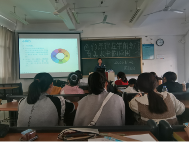 2020年11月3日下午2:00-4:00,教育学院学前教育系付立利老师,开办了一场主题为《色彩原理在学前教育专业美术中的应用》的学术讲座,参加学生有20级与19级相关学前教育专业学生师生到场听讲。