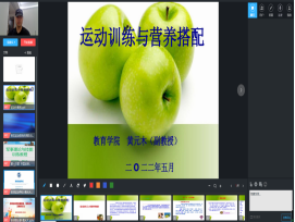 近年来由于新冠疫情,对大学生的生活学习以及课外体育锻炼产生了诸多影响,为了进一步提高大学生自身的防疫能力,鼓励大学生通过体育锻炼,增强自身免疫力,培养正确的生活方式,树立正确的运动健康观念,教育学院黄元木老师于5月10日下午面向在校学生举办了一场名为《运动训练与营养搭配》的线上讲座。