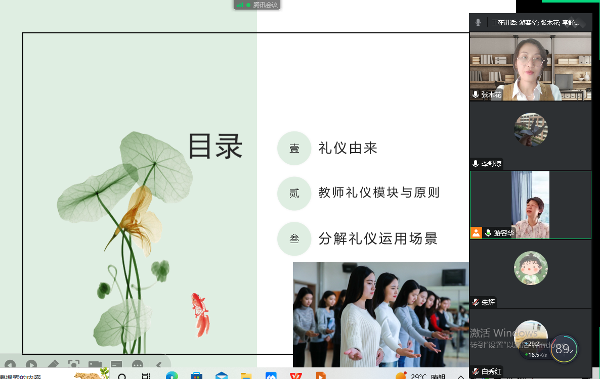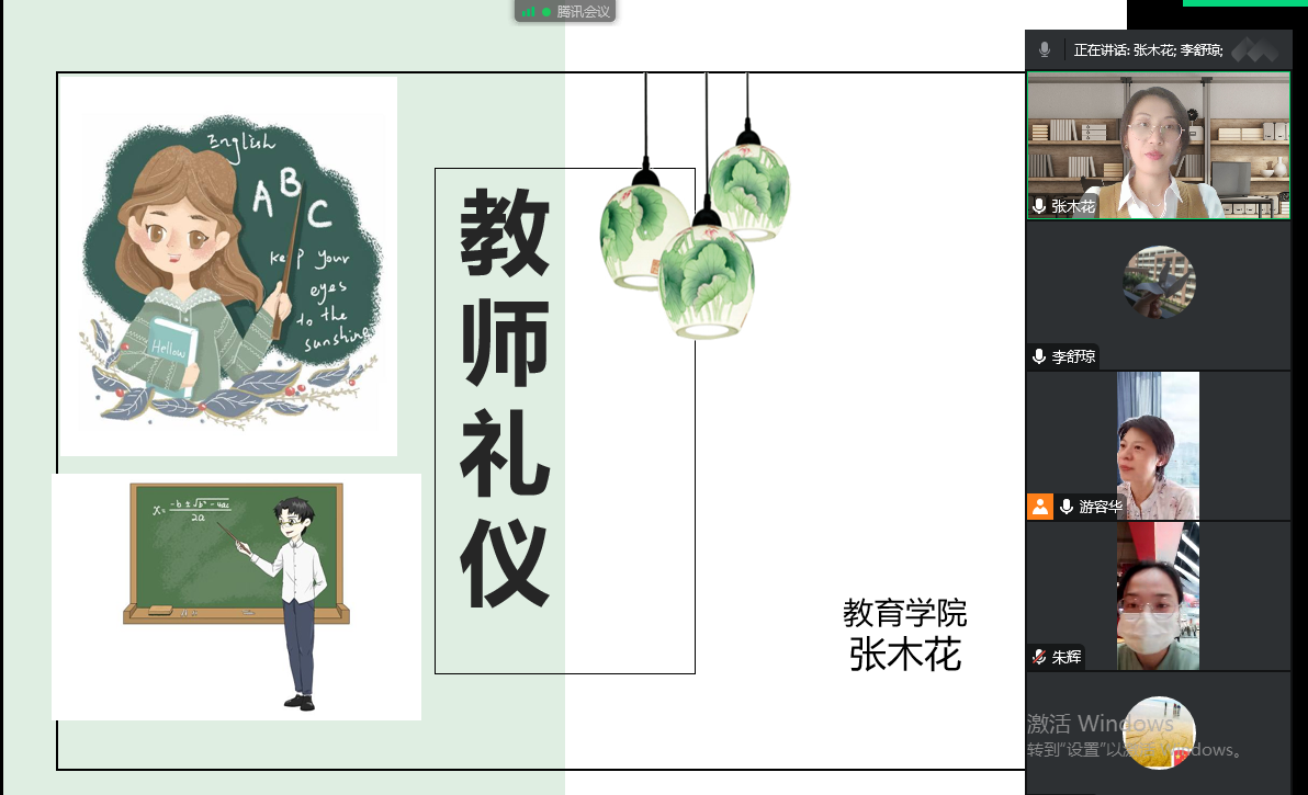 2022年11月22日下午3点30分,教育学院老师张木花在腾讯会议与教研室的老师们开展了一场为“教师礼仪”的培训讲座。