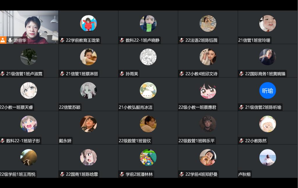 2022年12月7日晚上6点30分,教育学院汉语言教研室游容华副教授在腾讯会议开展了一场主题为“存在主义心理学的邀请”学术讲座,校文学俱乐部部长石秀丽负责统筹线上成员签到,80多位同学在线听取了此次讲座。