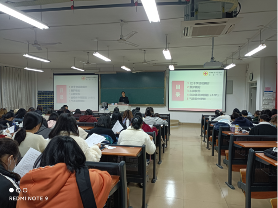 讲座中,童智锦老师从造成运动损伤的十大原因,运动伤害的因果关系,运动损伤的急性处理,急性损伤的处理原则;红十字运动简介、 救护概论、心肺复苏、自动体外除颤器(AED)、气道异物梗阻等5个方面;阐述了红十字运动起源于战场救护,同时它也是人类文明进步的象征;更是人类社会发展的必然产物。红十字运动的宗旨是保护人的生命和健康,保障人类的尊严;促进人与人之间的相互了解、友谊和合作,促进持久和平。