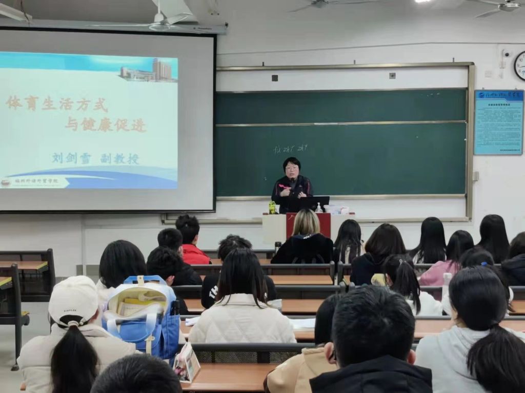 随着“体育强国”“健康中国”建设的逐步推进,使得大学生在体育具有健身功能,娱乐功能,益智功能,育德功能,社会功能的认知基础上,越来越接受体育也是一种生活方式的理念,为了进一步帮助我校学生对体育融入校园生活,树立科学的运动健康观念,掌握健康的体育生活方法,教育学院刘剑雪老师于4月2日下午面向在校大学生举办了一场《体育生活方式与健康促进》的讲座。