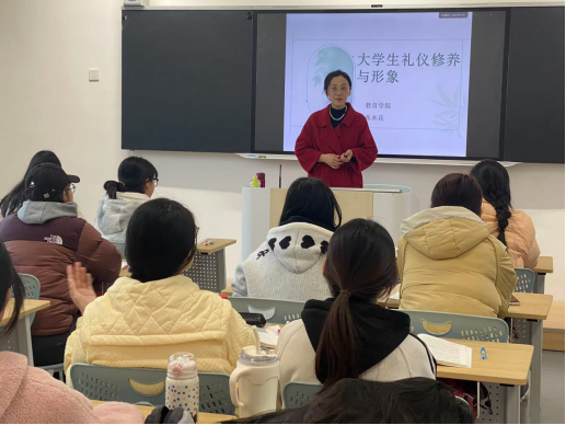 传承千年的礼仪文明,是中国传统文化中重要组成部分,礼仪不仅可以提升大学生的素养还可以塑造当代大学生风范。2024年12月10日,教育学院张木花老师为我校2024级学前专业同学开展了“大学生礼仪修养与形象”主题讲座,到课学生51人。