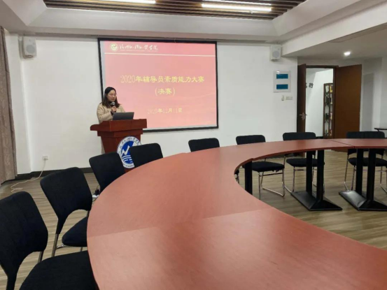 3项内容。现场决赛以谈心谈话和案例分析的方式决出最终胜负。郑晓静老师凭借扎实的理论功底、过硬的素质能力、丰富的工作经验,一路过关斩将,得到评委老师和同仁的一致好评,在辅导员素质能力决赛中拔得头筹!