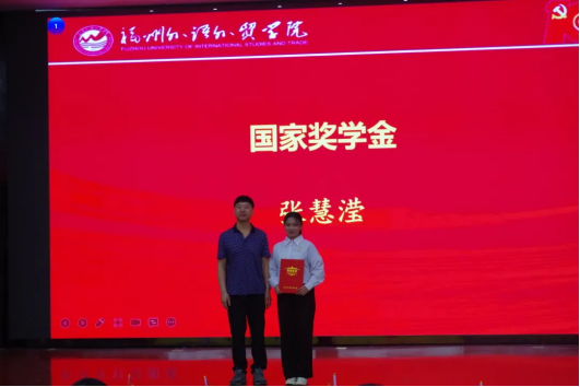 学院副院长刘炎欣教授为获得“国家奖学金”的同学颁发证书