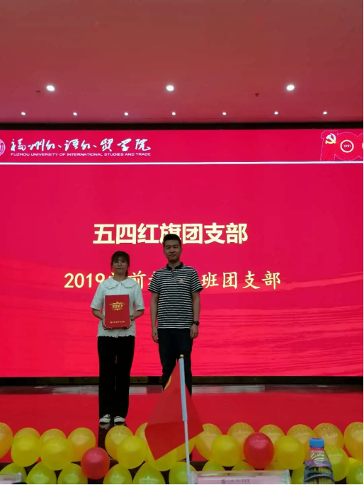 校团委副书记、学生会秘书长王征榕老师为获得“五四红旗团支部”的班级颁发证书