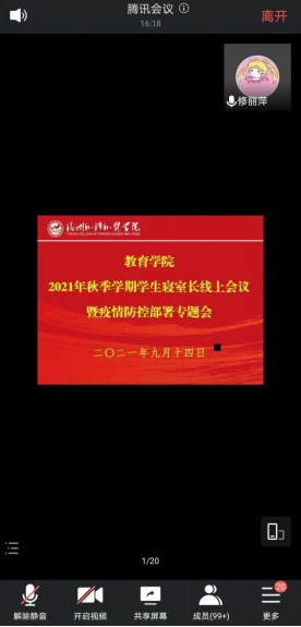 我院召开2021年秋季学期学生寝室长线上会议暨疫情防控部署专题会