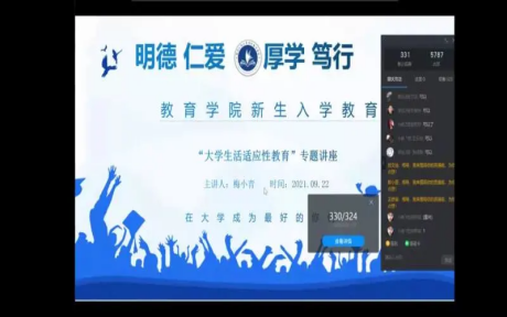 9月22日上午,我院通过钉钉APP开展“大学生活适应性教育”专题讲座,由辅导员梅小青老师主持,教院全体新生参加。