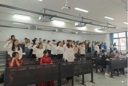 考研学生代表带领全体同学一同宣誓,铿锵有力的誓言表明了我院莘莘学子的决心