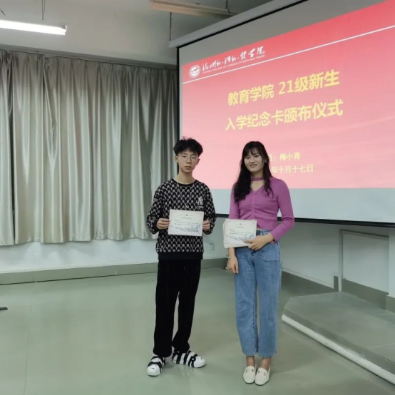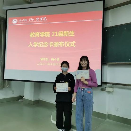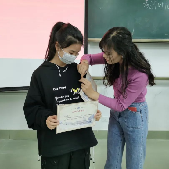 活动结束后,为迎接2021级的新生们,教育学院为大家准备了精美的入学纪念证书,由梅小青老师一一颁发给大家。这富有意义的一幕,意味着:在这阳光灿烂的日子里,我们教育学院迎来了活泼可爱、天真聪明的大一新生们,福外教院因为有你们的加入而更加有活力和生气。同时,梅小青老师为新生们佩戴上乐鱼网页版的校徽,这一刻仿佛见证了新生们领取人生中的第一张入学通知书的神圣时刻,满满的仪式感和自豪感。