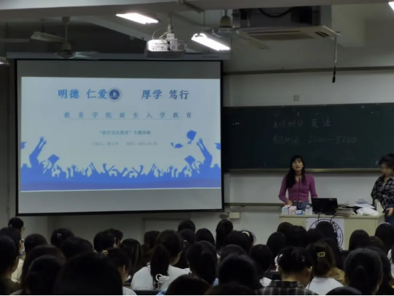 学生的健康、快乐的成长是每位老师的职责,在传授科学文化知识的同时,安全教育也是必不可少的一部分。为提高2021级新生安全风险防范意识,强化学生安全素质和防范能力,10月17日,教育学院开展安全教育主题活动。此次活动由梅小青老师主讲,全体新生参加。