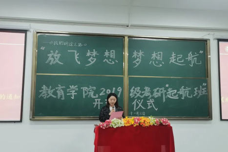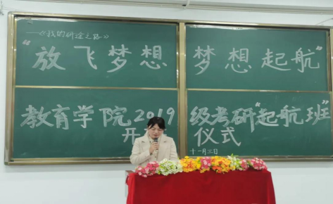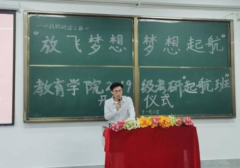 为提高我院考研辅导工作的针对性和有效性,进一步发挥优质教学资源的优势,优化教育教学模式,提升课程教学条件,营造我院学生良好的考研氛围,切实帮助我院2019级考研学子把握考研形势、端正考研态度、提高备考复习质量。11月3日,我院以“我的‘研’途之路——放飞梦想,梦想起航”为主题举办教育学院2019级考研“起航班”开班仪式。教育学院副院长、分党委书记林业铖,学前教育系主任刘闽阳,2019级班导师、考研服务中心、博方考研中心等相关人员参加了开班仪式。开班仪式由2019级辅导员刘梦泸主持。