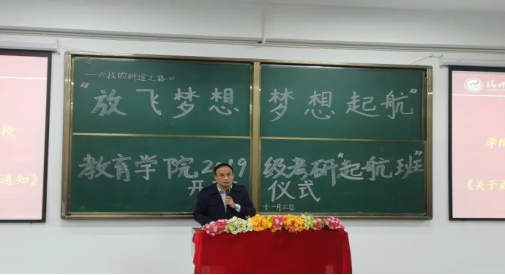 学院副院长、分党委书记林业铖副教授宣读《关于成立教育学院2019级考研起航班的通知》