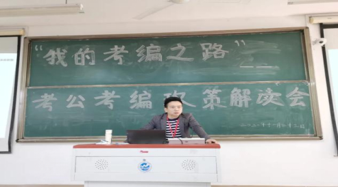 为帮助我院19级学生找准未来努力方向,明确今后奋斗目标,有效制定考编的学习计划。11月23日,我院于实3202开展了“我的考编之路”——考公考编政策解读会,该会议由星文教育集团万权标老师主讲,2019级学生共同参与。
