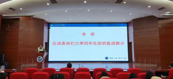 林新年教授从为什么要考研、报考专业和报考学校的建议及笔试注意事项三个方面为学生们详细讲解了考研的相关事项。