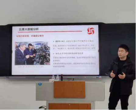 陈俊副教授首先通过三大重点赛事之间的介绍与对比,让全体教师更清晰的了解各项创新创业赛事的侧重点所在。接着通过对三大赛事备赛阶段时所需准备的策划书、路演PPT、项目申报书等材料要点进行说明与强调,并通过分析团队成员的性格特点与能力从而给团队成员分配更为合适的岗位与任务。最后从六个角度介绍了三大赛事的“制胜之道”,让教育学院全体教师了解如何培养学生发现、分析和解决问题能力,独立思考和学习能力,获取知识和运用知识能力,信息加工和聚焦思维能力,动手实践和科学研究能力等多个方面的综合能力。