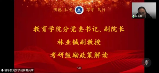林新年教授从就业学历要求、考研成功概率、考研时间安排这三个方面向家长们进行考研方面的解读。林新年教授结合当前考研形势,提出以下两点建议:一、报考其他地区的院校,增长自己的见识,增加自己人生历练的体验;二、督促孩子们合理利用假期时间,明确报考院校,以积极的心态备战考研。通过家校联动的方式,形成合力共育的局面,筑梦学子的考研之路。