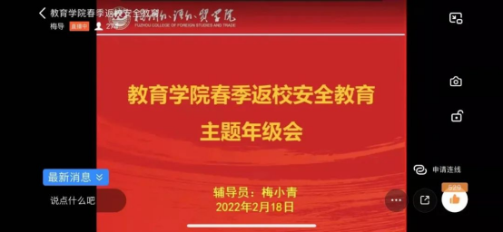 此次主题年级会不仅帮助教院学子在第一时间掌握了返校相关管理制度,也及时解决了同学们关于返校事宜上的诸多困惑,为我院新学期学生平安顺利返校打下了坚实的基础。最后希望教院学子在新的学期不忘初心,勇往直前,努力到达梦想的彼岸!