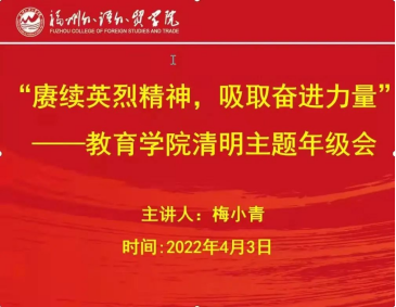 最美人间四月天,最深的缅怀是弘扬,最好的纪念是传承。通过本次会议,让同学们深入了解到清明传统节日的丰富内涵,也激发了同学们热烈的爱国之情。希望我院学子在革命精神的感染下,敢于接受挑战,不轻言放弃,克服一切艰难险阻,汇聚磅礴力量,在新征程上慨然前行。