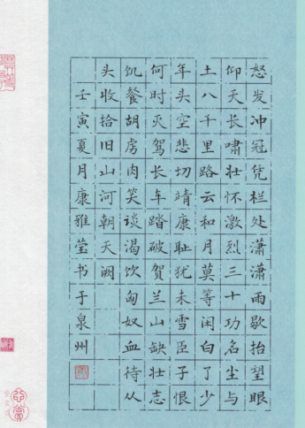 硬笔大学生组一等奖作品:《满江红·写怀》