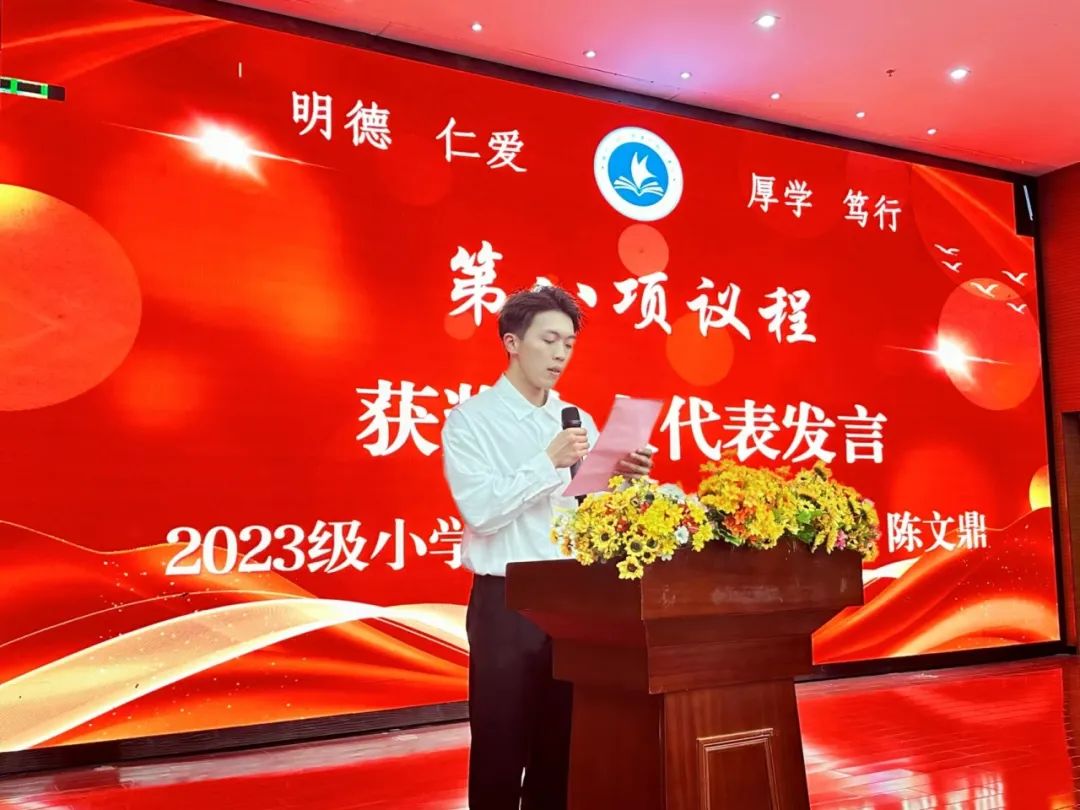 “十佳运动员”获奖同学陈文鼎作为代表发言,他呼吁同学们继续发扬赛场上积极进取、顽强拼搏的团队精神,锻炼坚持不懈、共同进退的体育精神。“工作先进个人”获奖教师洪启焕老师作为代表发言,他鼓励教院学子在兼顾学习的同时,能够积极参与体育活动,全院形成快乐学习、健康生活的良好风貌。